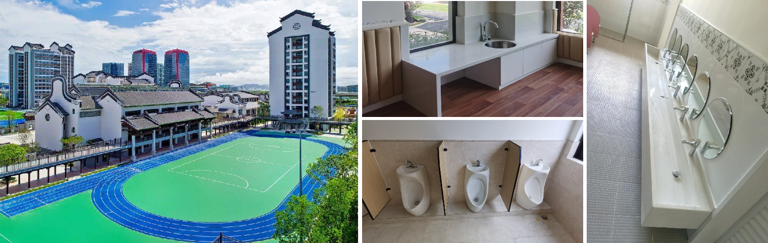 珠海容閎學校、斗門區第二實驗小學、珠海德威高中、珠海市公安局幼兒園等等,廚房、衛生間均選用普樂美產品。