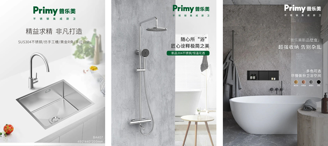 憑借敏銳的市場洞察力與市場調研,在2022年普樂美廚衛推出了集競爭力、高顏值、高品質、場景應用更多元的水槽、花灑及壁龕三大品類新品。