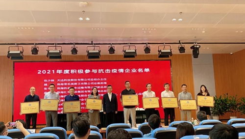 珠海普樂美廚衛有限公司獲得了積極參與抗擊新冠肺炎疫情活動企業的表彰。
