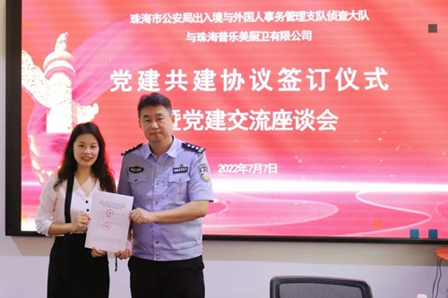 座談會上,珠海市公安局出入境與外國人事務管理支隊偵查大隊政委譚大江表示:我們將共同致力于黨建資源互享,黨員隊伍互動,共辦實事好事,共同搭建政企交流溝通的橋梁紐帶,護航民營經濟健康發展。