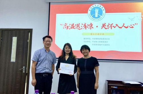 平沙鎮副鎮長盧勇、邱宗英出席了捐贈儀式,盧勇表示:堅守抗疫一線的工作人員,為守護大家的健康與平安,付出了許多辛勞,希望通過開展此次活動,把企業的關懷送到廣大一線工作人員的心坎上,確保他們在炎熱夏季的身心健康,安心工作。