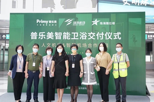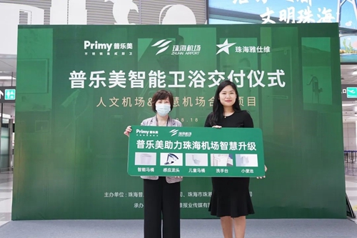 交付儀式上,珠海機場全新升級的智能衛浴在珠海機場、普樂美雙方代表及與會嘉賓的見證下正式啟用。